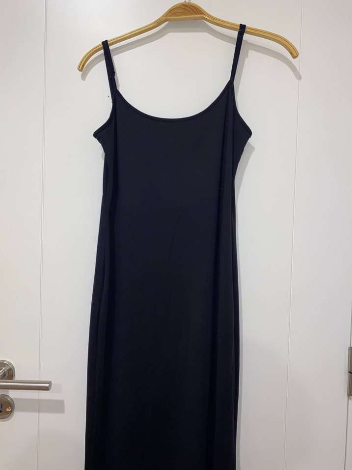 Siyah, ince askılı uzun elbise, düz kesim ve straplez yaka ile sade ve şık bir görünüm sunar. Günlük kullanım için uygundur. Cok kullanisli bir kere giyemedim bedeni olmadigi icin