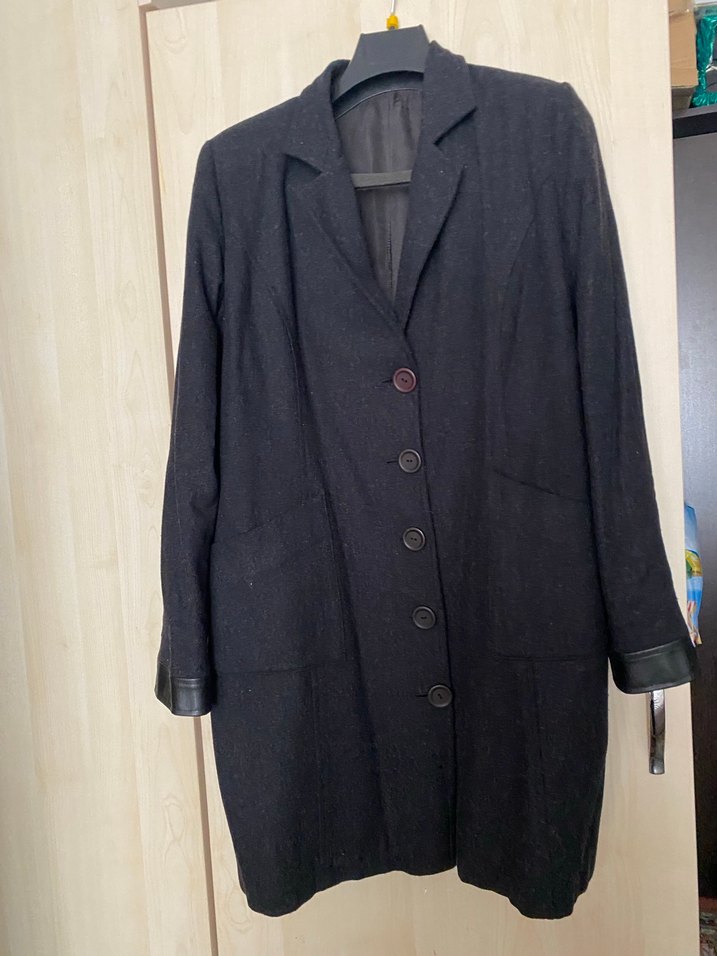 Siyah ince kaşe astarlı kadın kaban, düğmeli ve kesik yakalıdır. Normal kesim ve midi boyda, uzun kollu, iş ortamı için uygundur.MARKA TEMSİLİDİR etiketi mevcut değil ancak 40-42 bedene uyumludur ölçüleri paylaştım