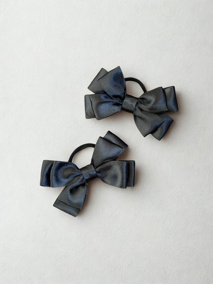 Siyah ince saten 2li fiyonk toka