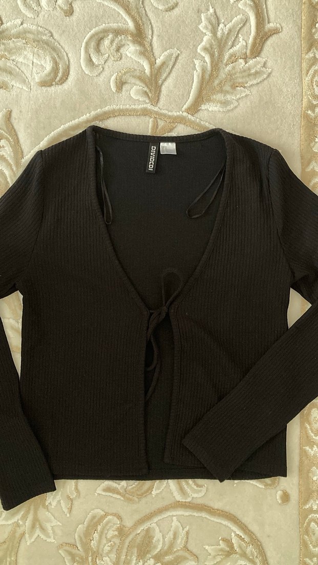 Siyah renkte, V yaka ve uzun kollu, ince triko kumaştan yapılmış, midi boyda, sade desensiz ve vücuda oturan bir hırka. Hiç giymedim. Defosu yoktur.