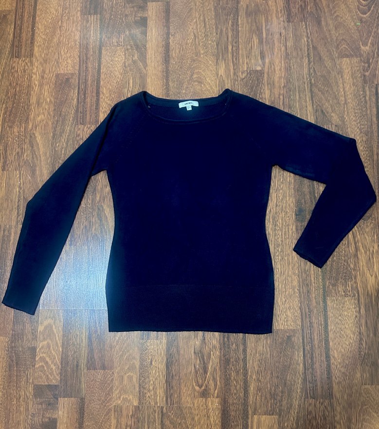 Bu lacivert , ince yünlü kadın kazak, uzun kollu ve bisiklet yaka detayına sahiptir. Rahat ve sade tasarımıyla günlük kullanıma uygundur.