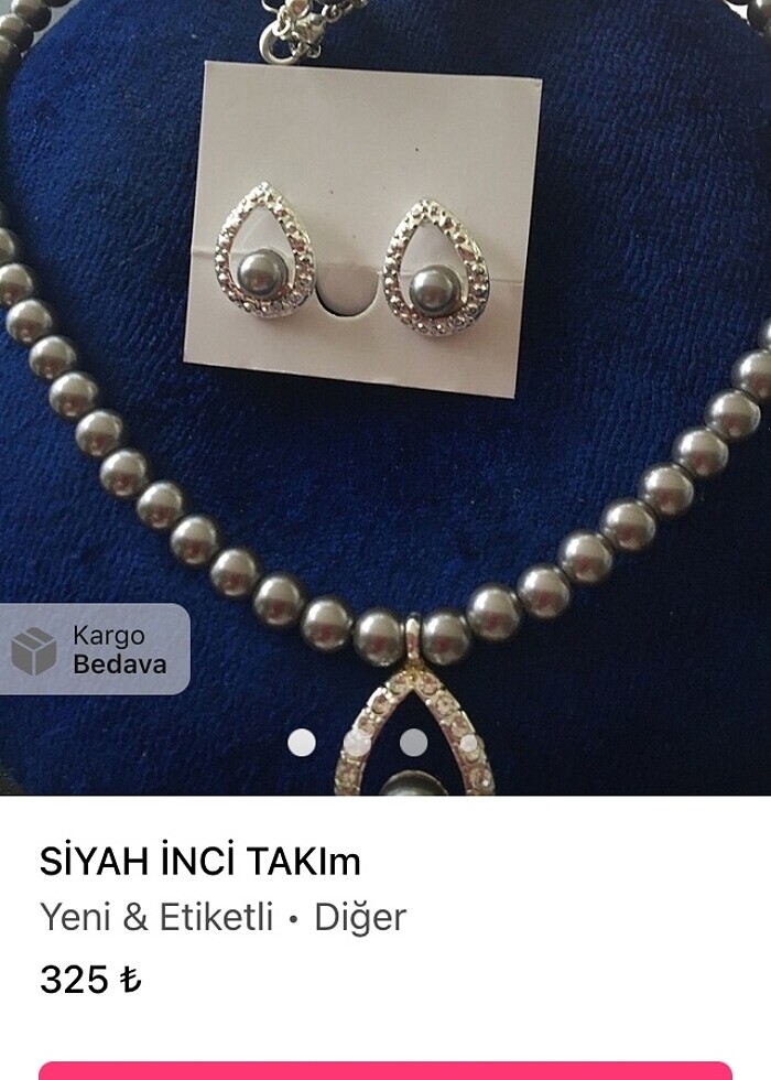 Yeni sıfır ambalajlı üründür çelikk ve rodyum kaplamadır ömür boyu kararma yapmaz inciler koyu gri gümüş rengi çelik kısımlardır yaz için çok şık bir set