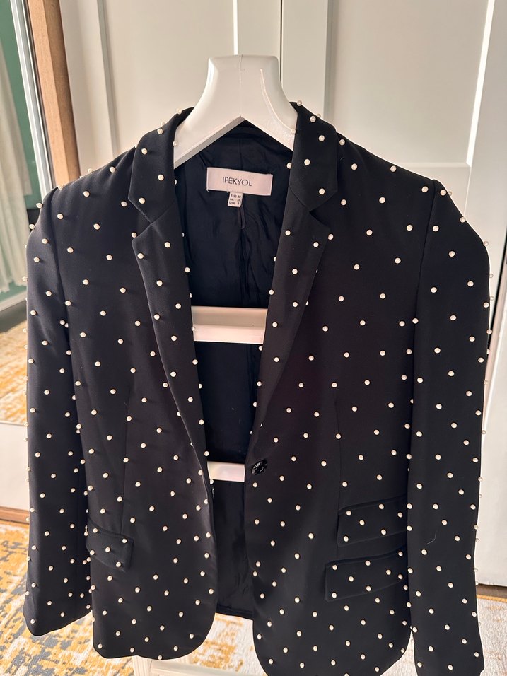 Siyah incili Kadın Blazer Ceket
