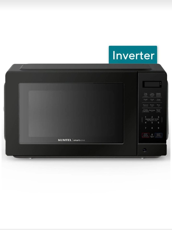 Kumtel marka siyah mikrodalga fırın, inverter teknolojisi ve dijital kumanda paneli ile pratik kullanım sağlar.