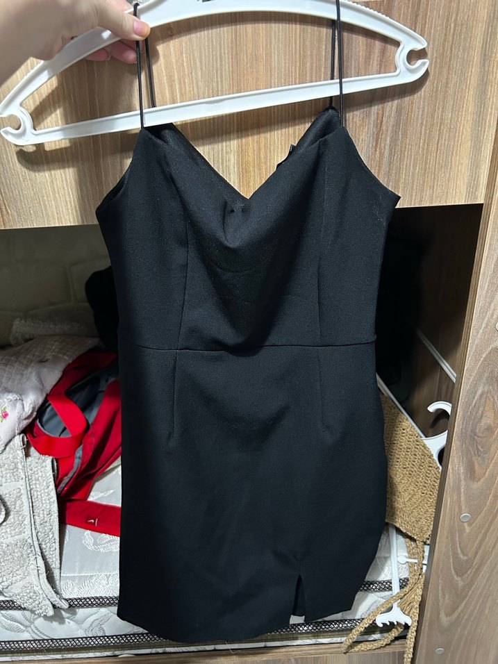 Siyah ip askı mini Elbise
