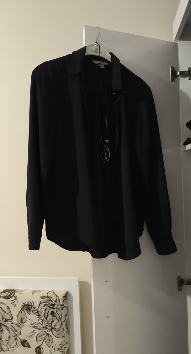 Siyah, İpek Görünümlü, Uzun Kollu Kadın Gömlek