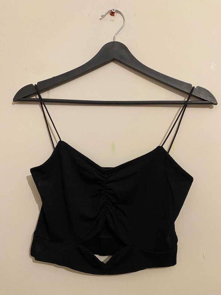 İpek görünümlü, siyah renkli ve v yaka olan bu fitted büstiyer, ince askılar ve drapeli detaylarıyla romantik akşamlar için uygundur. Midi boyu ve minimalist goth stili cesur bir şıklık sunar.