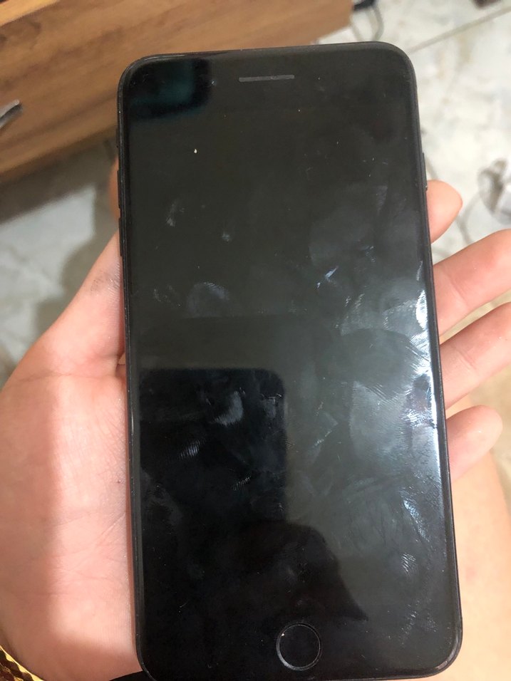Siyah iPhone, önünde ana ekran düğmesi ve parmak izleri bulunan koyu renkli ekranıyla. Şifre ve icloud var o yüzden fiyat uygun içinde ki her parça sağlam kasası güzel sorunsuz
