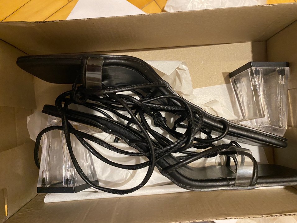 Siyah ipli sefaf topuklu hiç giyilmedi emoyra