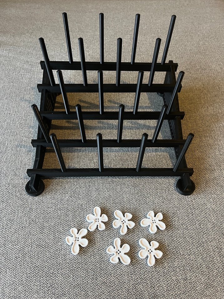 Siyah iplik standı ve 6 adet beyaz çiçek desenli düğmeyi içerir. Ürünler 3D yazıcı ile üretilmiştir. İplik standının kapasitesi 20 bobin tutacak şekildedir, düğmeler de 30 mm çapında ve 3 mm yüksekliğindedir.
