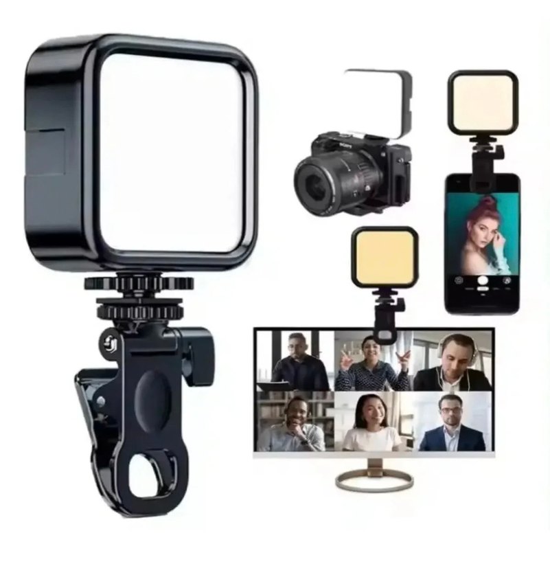 Siyah selfie çubuğu ve tripodu, fotoğraf ve videolarda aydınlatma sağlayan ışıklı panel içerir. Kameralar ve akıllı telefonlarla uyumludur.