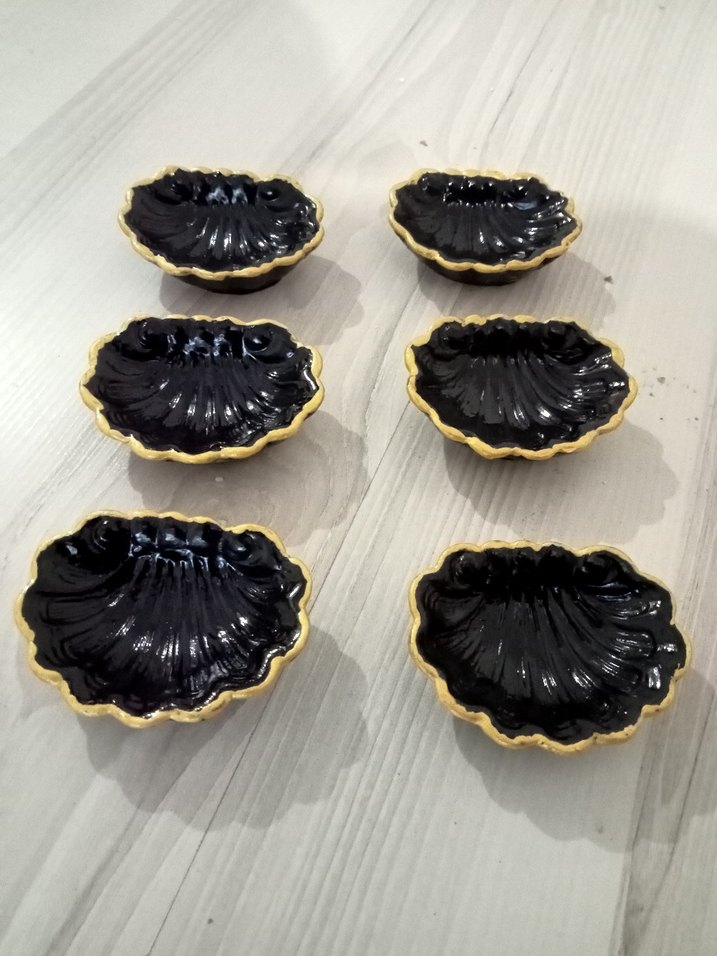 İşlemeli desenli, altın kenarlı siyah tabak seti, klasik tarzda ve canlı koyu renktedir. ️