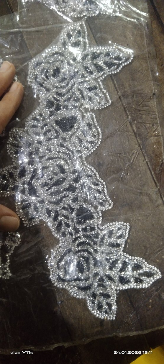 Siyah İşlemeli Boncuklu aplike büyük boyutlu