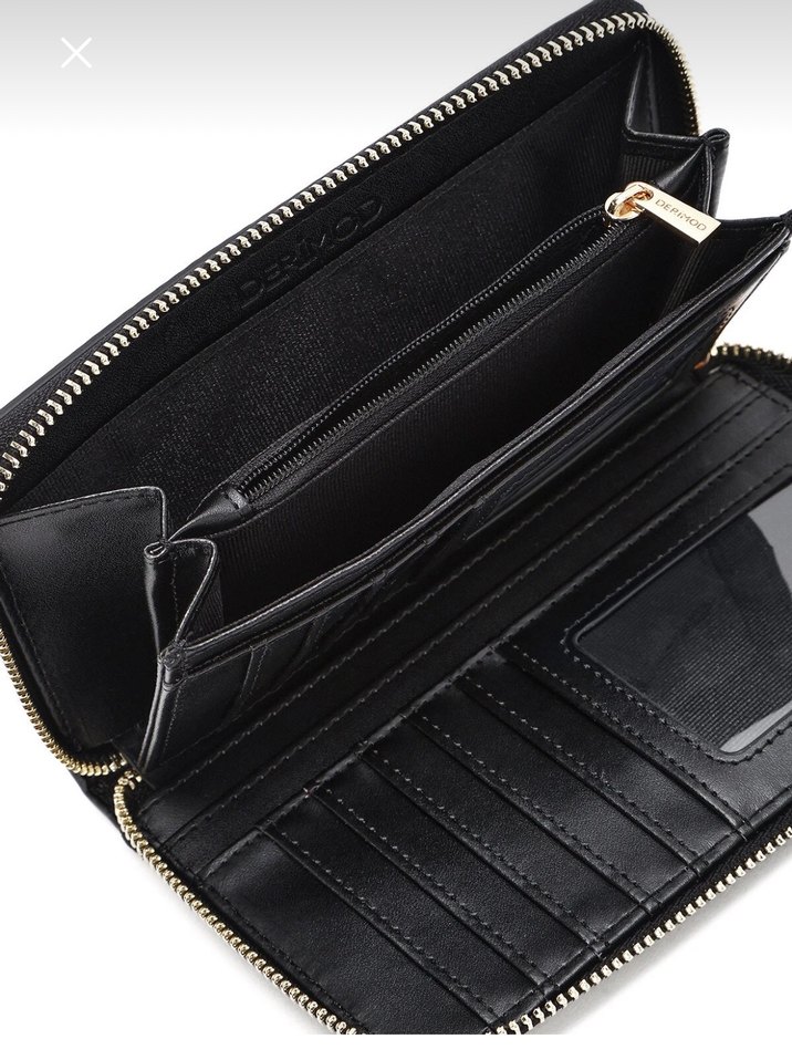 İşlemeli siyah deri kadın cüzdanı, fermuarlı ve çoklu kart bölmeleriyle günlük iş kullanımı için uygundur. ✨