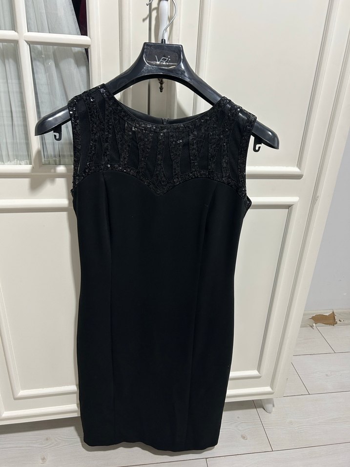 Siyah İşlemeli Midi Siyah Elbise