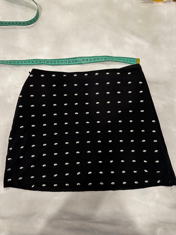 Siyah işlemeli payet detaylı, sentetik kumaştan, fitted kesim mini etek, avangart gotik tarz için uygundur. ✨