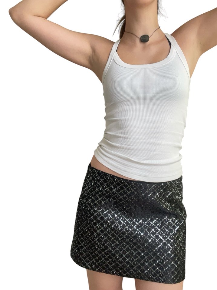 Siyah İşlemeli Payetli Mini Etek