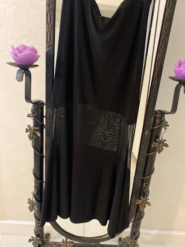 Siyah, işlemeli, uzun ve drapeli bu etek, ince ve ipeksi dokusuyla romantik akşamlar için uygundur.