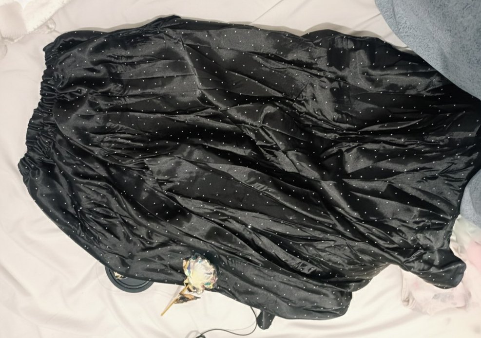 Sentetik kumaştan yapılmış, işlemeli detaylara sahip, drapeli ve siyah taşlı, uzun Parti ve avant-garde tarzlara uygundur. ✨ bı kere düğün günü giymiştim sıfır gibi hala kırışik model