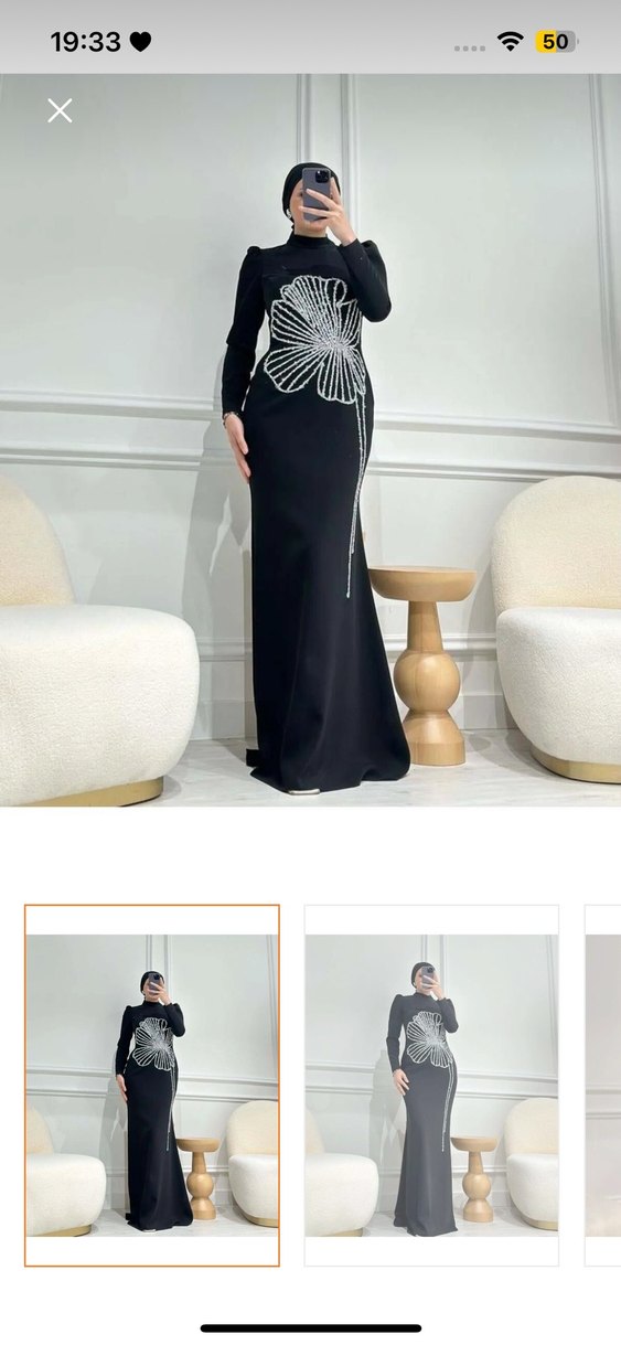 Siyah İşlemeli Uzun Kadın Abiye Elbise