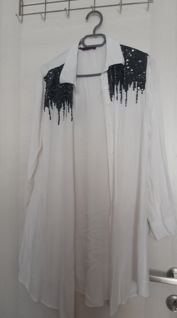 Uzun kollu beyaz gömlek, siyah işlemeli omuz detayları ve bol kesimiyle, yumuşak sentetik kumaştan üretilmiştir. Sokak stilini günlük rahatlıkla buluşturur.