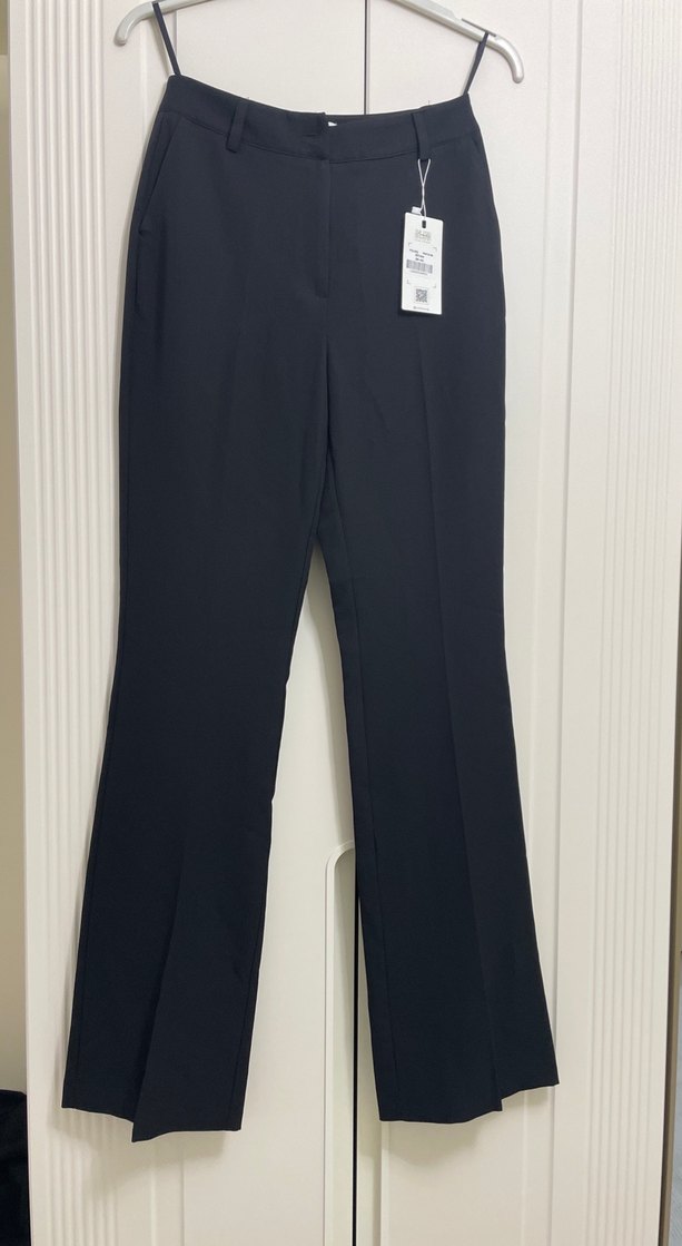 Düz siyah , regular fit kadın kumaş pantolon. Ofis ve iş ortamına uygun, rahat ve şık sentetik kumaş. Düğmesi kopmuştur