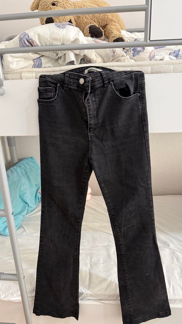 Bu siyah kadın kot pantolon, midi boy ve oturan kesime sahiptir. Kot kumaştan üretilmiş olup günlük rahat kullanıma uygundur.
