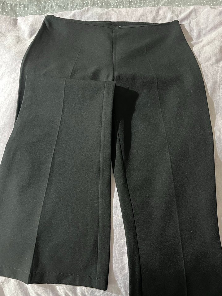 Siyah renkli, ispanyol paça, kadın kumaş pantolon. fermuarlı ve ofis kullanımı için uygundur. 170 - 54 kilo olarak rahat sığıyorum spor ayakkabıyla giyince uçları yere değebiliyor gerekirse kesim yaptırılabilir