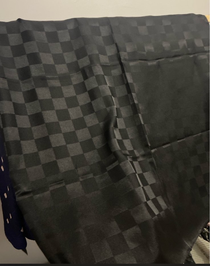 Kadınlar için siyah, kareli desenli, dökümlü tasarıma sahip, yumuşak sentetik kumaştan örtü. Goth ve avangart tarzlar için uygundur.
