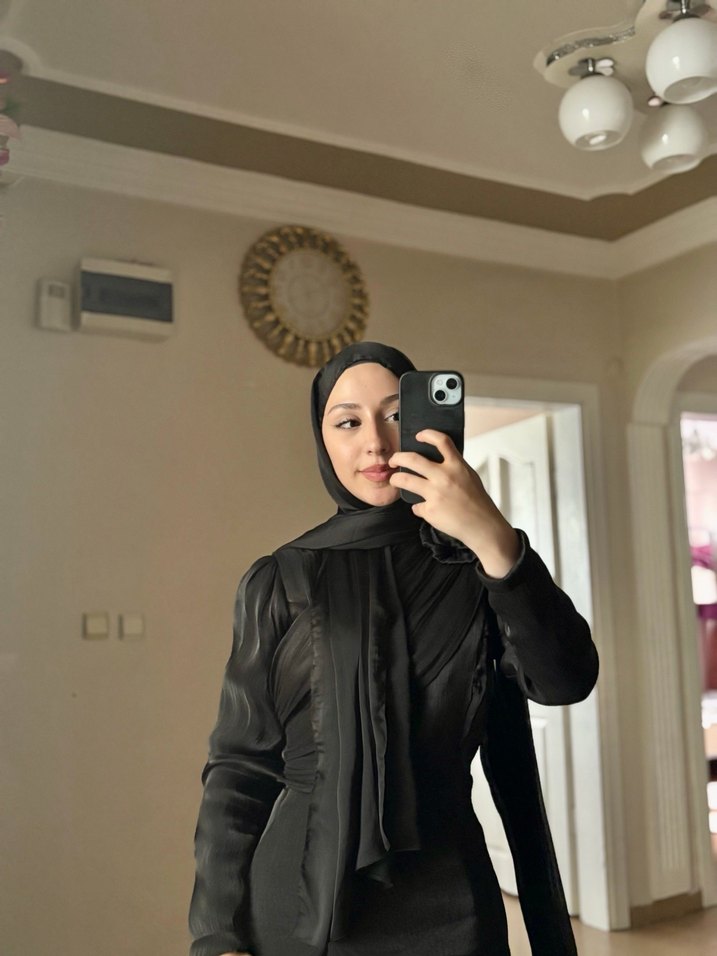Zarif tasarıma sahip siyah kadın elbise, dokusuyla minimalist tarzını yansıtır. Mütevazı ve şık bir görünüm sunar.