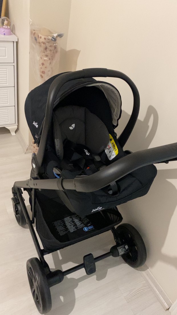 Siyah Joie marka bebek oto koltuğu, tekerlekli puset çerçevesiyle kolay taşınabilir. Yumuşak oturma yeri ve ayarlanabilir tutamağa sahiptir. Puset+ normal oturma ünitesi + yagmurluk + puset aparati hepsi beraber satilik !!!