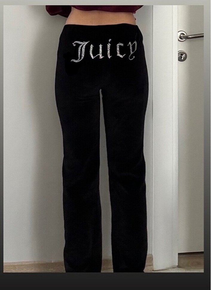 Baskılı 'Juicr' yazılı, kürklü detaylı, siyah süet kumaştan, midi boy, dar kesim kadın sweatpants. Günlük kullanıma uygun cesur goth tarzı.