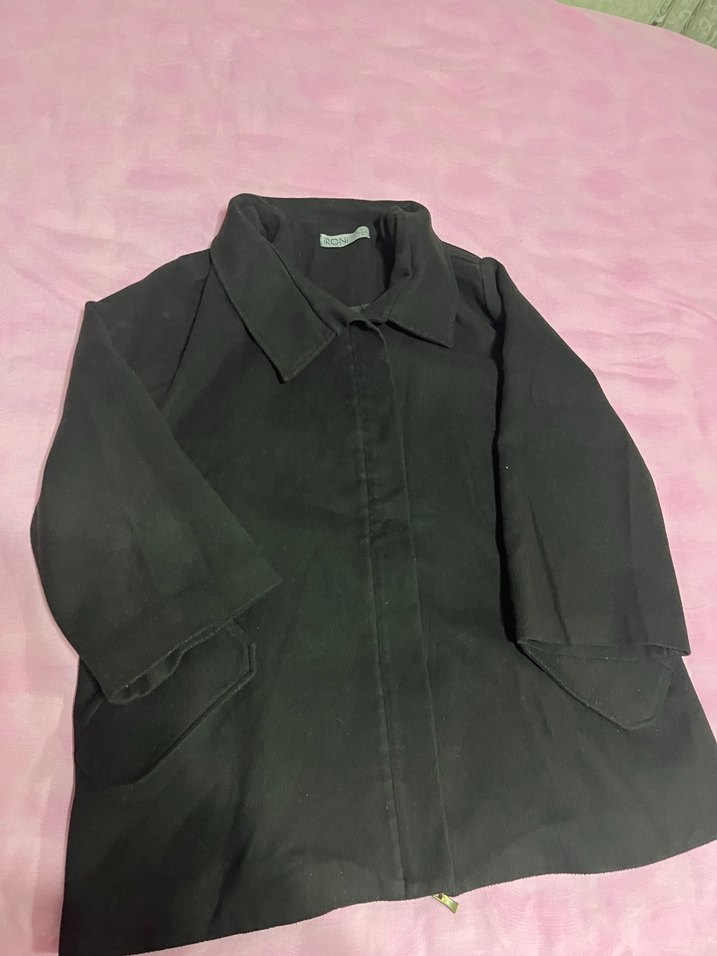 Siyah kaban , geniş kesim ve yaka detayına sahiptir. Uzun kollu ve midi boyda, günlük kullanıma uygundur.