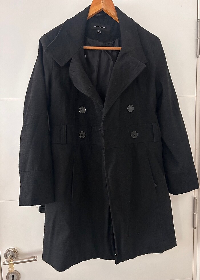 Kemerli ve düğmeli kaban. Bedeni Large Defosu yok