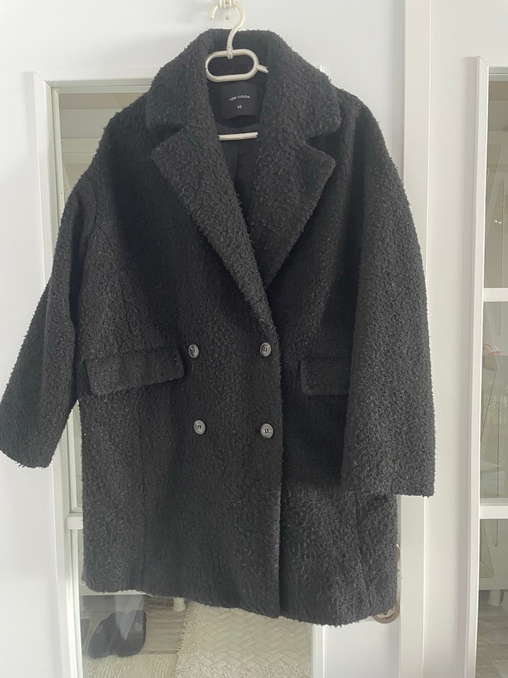 Siyah renkli, kabarık dokulu, uzun kollu ve geniş kesimli midi boy kadın kaban. Yumuşak ve sıcak kumaştan, günlük kullanıma uygun rahat ve trend bir parça. çok az giyildi herhangi bir kusuru yoktur dolabımız sadece iyileştirmek istediğim için satıyorum rengi tam siyahtır. oldukça sıcak tutar. Xs yazıyor ama S,M ve L bedene de uygundur