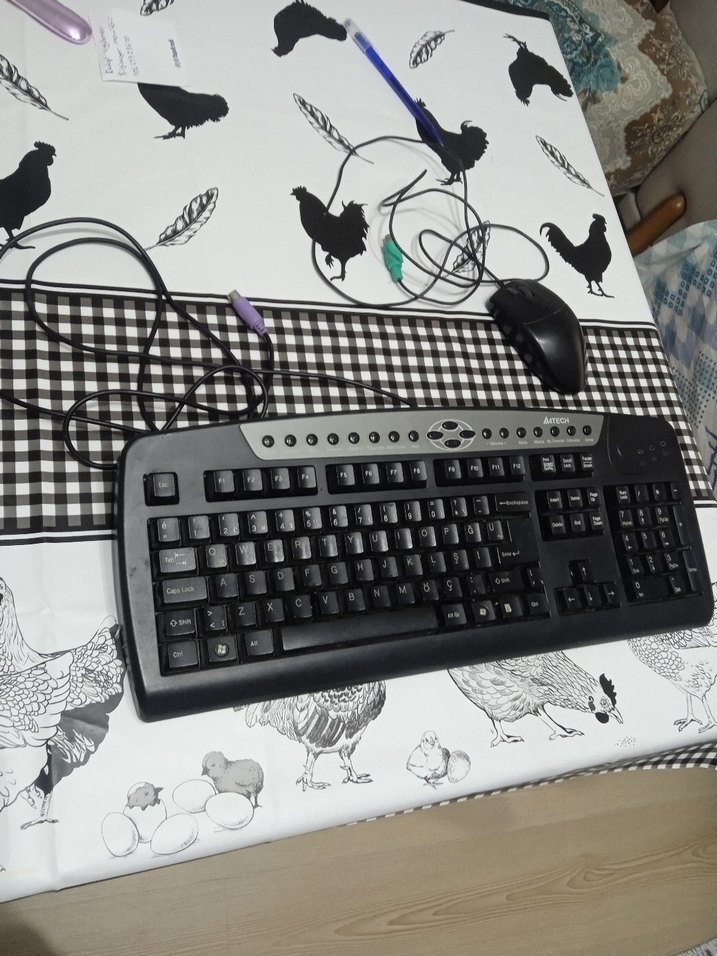 Ekstra fonksiyon tuşlarına sahip siyah kablolu klavye ve eşlik eden kablolu fare seti. ️