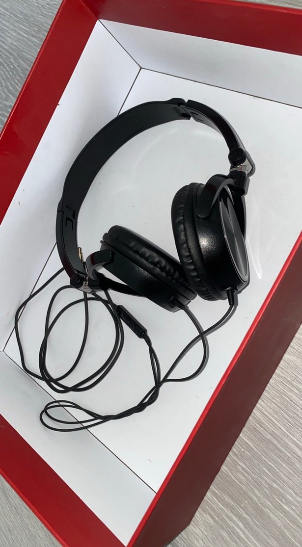 Yumuşak kulak pedleri ve ayarlanabilir kafa bandı ile siyah kablolu kulaklık.