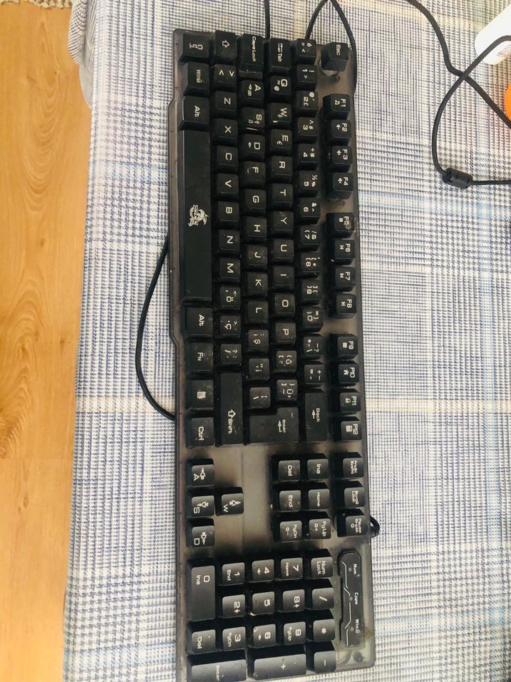 Kablolu, siyah mekanik klavye, tam tuş takımı ve fonksiyon tuşlarıyla birlikte standart düzen sunar. ️