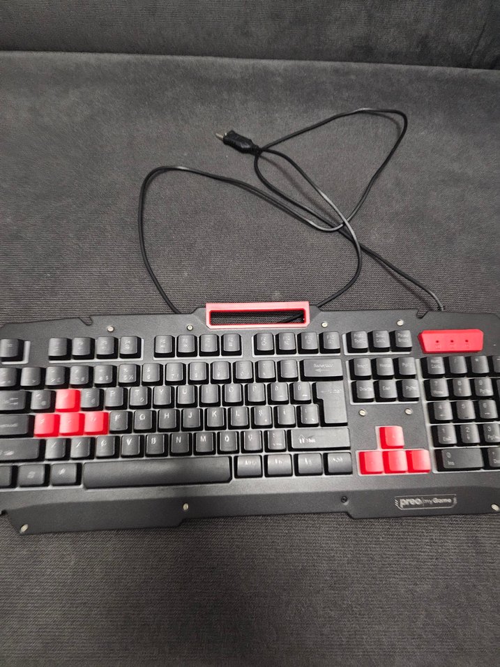 Siyah kablolu klavye, sağlam tasarım ve ayarlanabilir ayaklarla rahat kullanım sağlar.