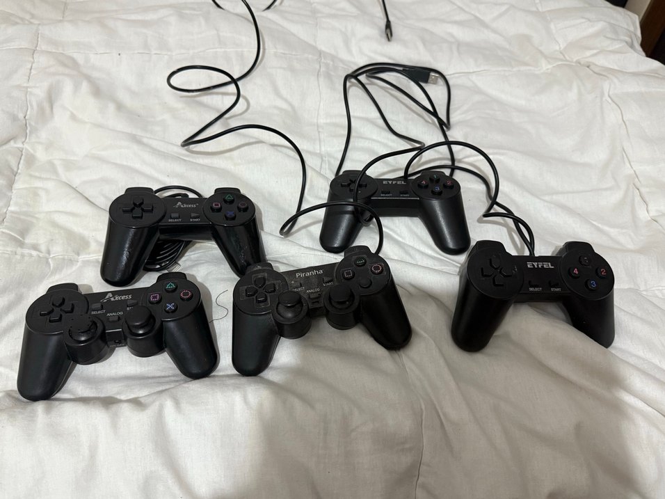 5 adet oyun kolu 2 si birbirine paralel bağlı orjinelinde öle Arkası pilli olanda kasada kırık var diğerleri resimde görüldüğü gibi Test edilmemiştir hiçbiri uzun zamandır bir köşede duran ürünler İadesiz şatış fiyat hepsi için geçerli Alana hayırlı olsun
