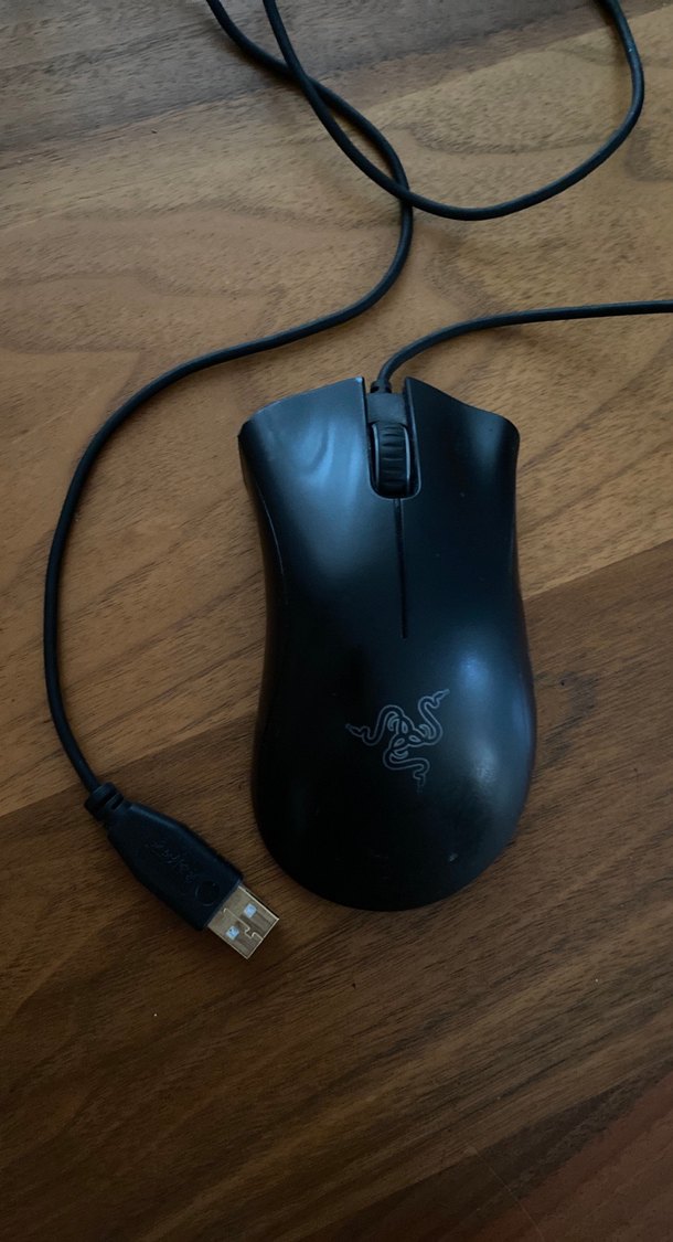 Siyah kablolu Razer mouse, ÇOK ACİL evden çıkacağım, resimdeki ufak aşınmasından ötürü uyguna bırakıyorum. %100 PROBLEMSİZ ÇALIŞIYOR. profilimde klavye kulaklık vesaire var.