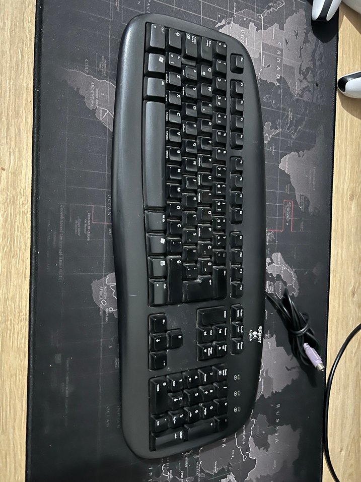 Tam boyutlu tuşları ve sayısal tuş takımı bulunan siyah kablolu standart klavye giriş soketi eski tip