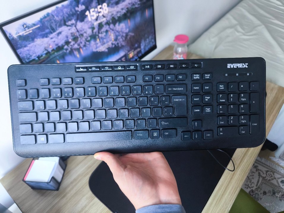 Siyah kablolu standart QWERTY düzenine sahip klavye, fonksiyon tuşları ile günlük bilgisayar kullanımı için uygundur. ️everes markadır sorunsuz.