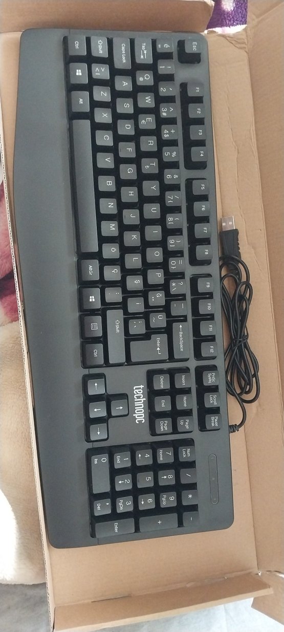 Teknopc markasının siyah kablolu klavyesi, tam tuş takımı ve sayısal tuşlarla donatılmıştır. USB bağlantılı ve şık koyu renklidir. ⌨️
