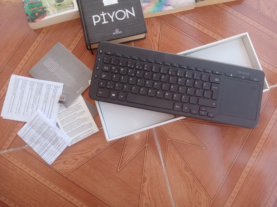 Koyu renk tuşlara sahip siyah kablosuz klavye, üzerinde "PIYON" etiketi bulunur. Şık tasarımıyla çeşitli kullanım alanlarına uygundur. ⌨️