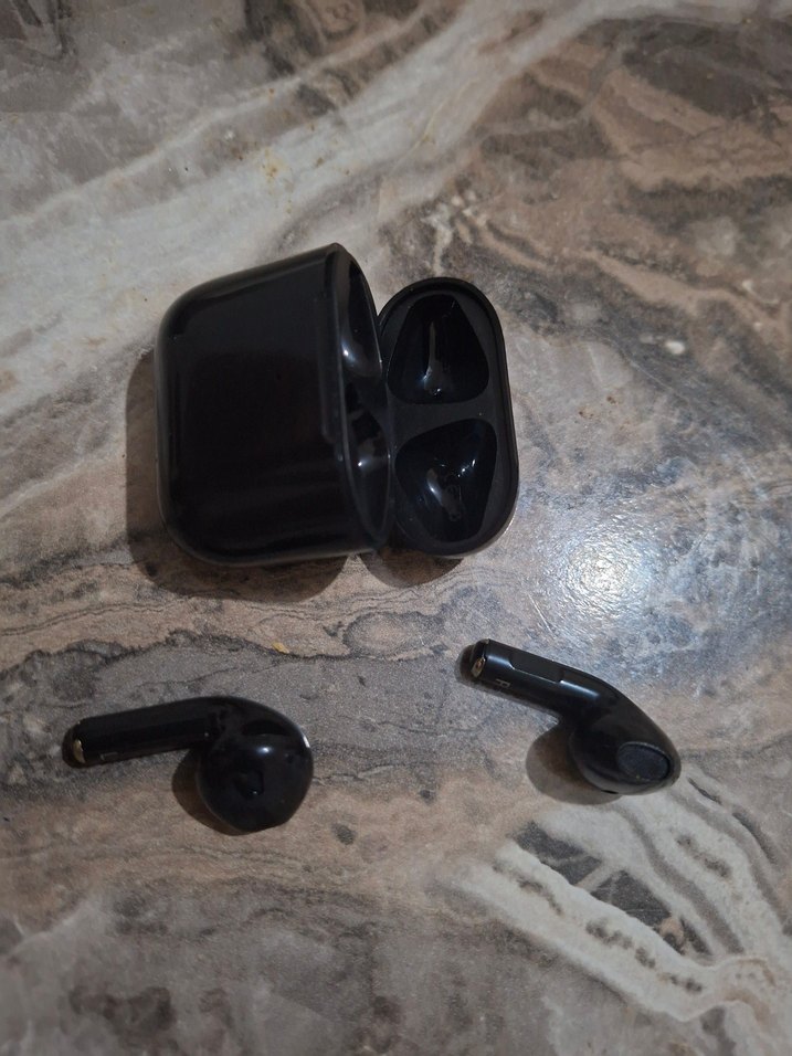Siyah kablosuz kulaklık. şarjz kablosu koptugu için kendi telefonumun kablosunu kullanıp şarjz ediyorum