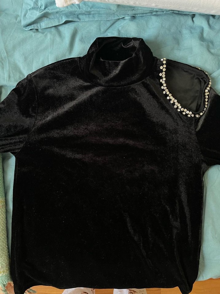 Siyah kadife , yüksek yakalı ve uzun kolludur. Omuzda bir dekolte detayı bulunmaktadır. Hem günlük hem de şık kullanım için uygundur
