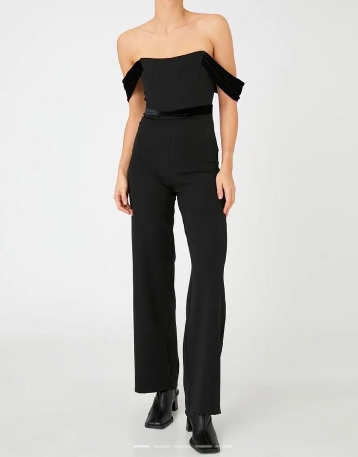 Siyah, kadife detaylı ve straplez yaka detaylı, ince şık bir kumaştan, vücuda oturan kadın tulumu. Romantik akşamlar için uygun. ✨ sıfır etiketli üründür. Giymediğim ve dolabımda bekleyen her şeyi satmaya karar verdiğim için satıyorum daha çok giyecek birine gitsin