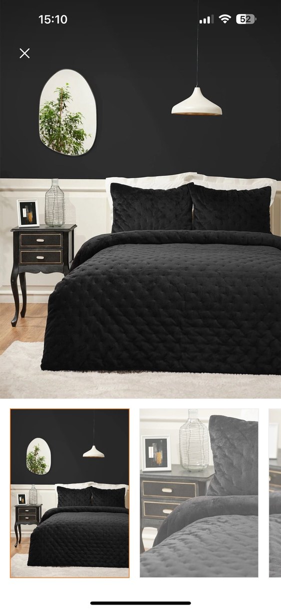 Yumuşak kadife dokulu, siyah renkli ve hafif elmas desenli yatak örtüsü. ️