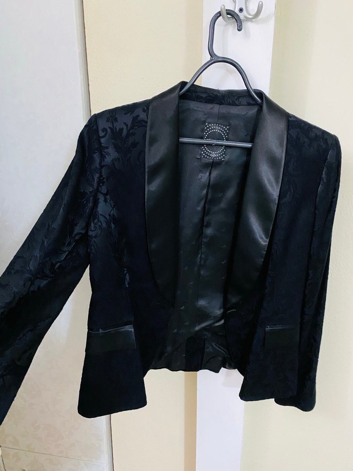 Siyah Kadife Dokulu Düğmeli Kadın Blazer